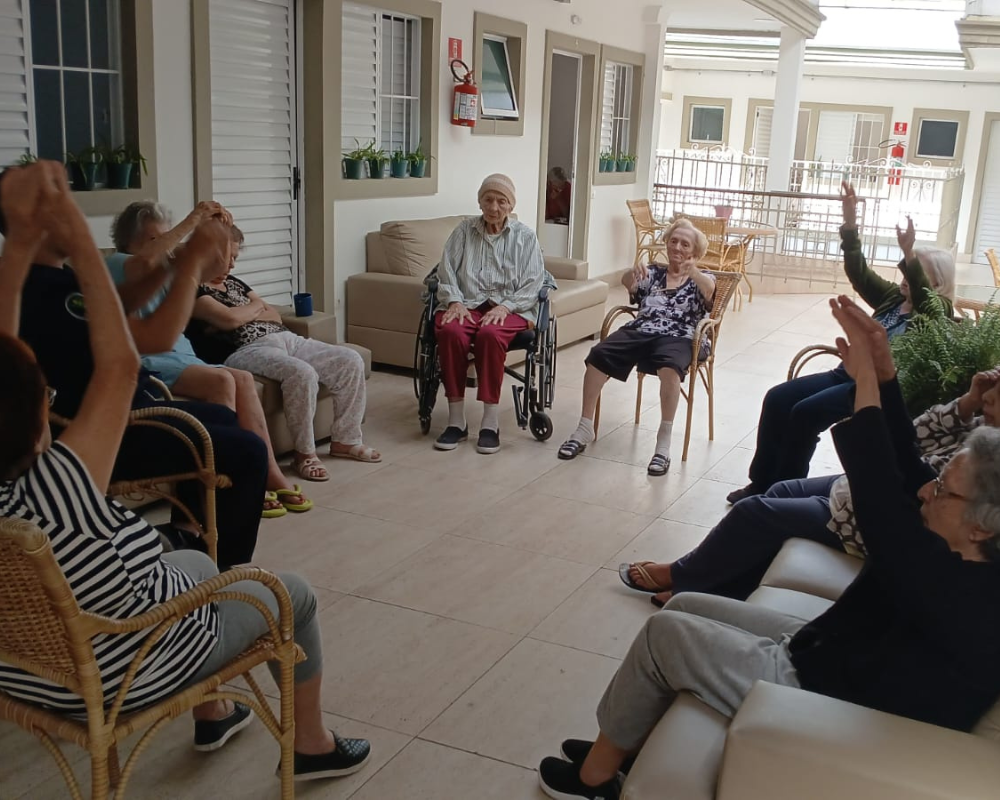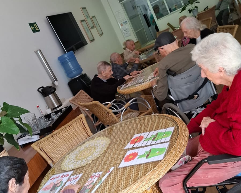 Todas as unidades possuem área externa, onde os residentes interagem entre si sob a observação e cuidados de nossos profissionais. Temos também refeitórios onde os idosos, aqueles que podem ir até a mesa, se encontram para as refeições.